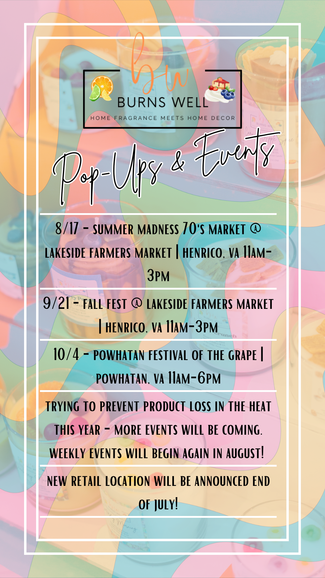 POP-UP EVENTS ALL OVER CENTRAL VA - HERE'S WHERE TO GET YOUR NEXT CANDLE!
