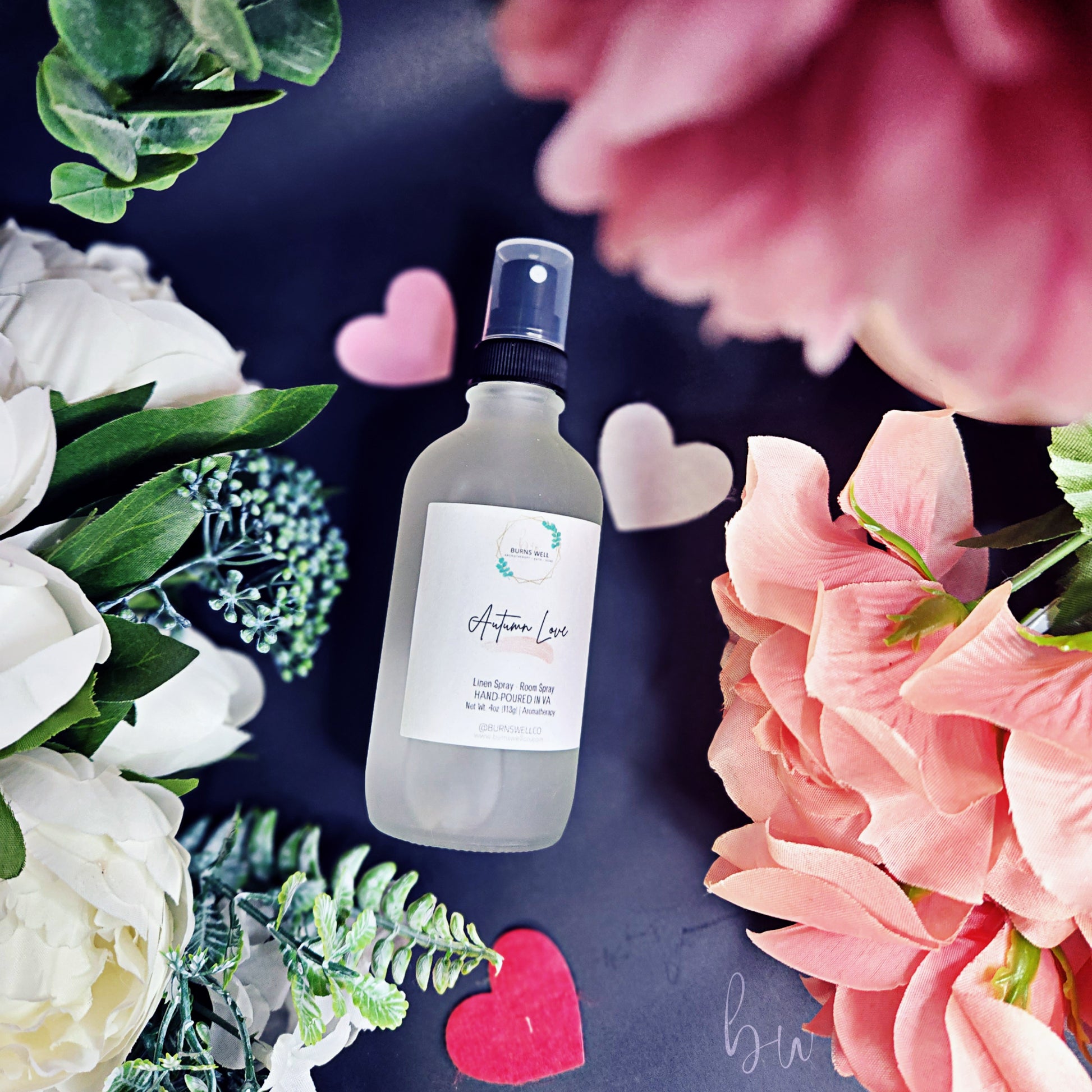 Autumn Love: Cedar and Sandalwood bring Autumn Love afloat with a calming, woodsy feel. Ground cinnamon, clove, and nutmeg layered with apple round out this scent with a hint of warmth and grounding. It doesn't have to be Spring for love to bloom! [Fall/Winter Scent]
